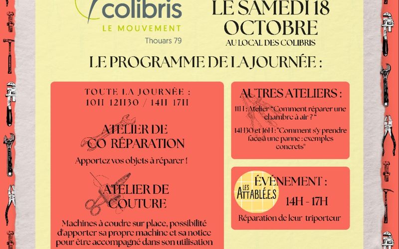 Le samedi 18 octobre, les Colibris de Thouars vous donnent rendez-vous pour une journée placée sous le signe du partage, du bricolage et de la bonne humeur