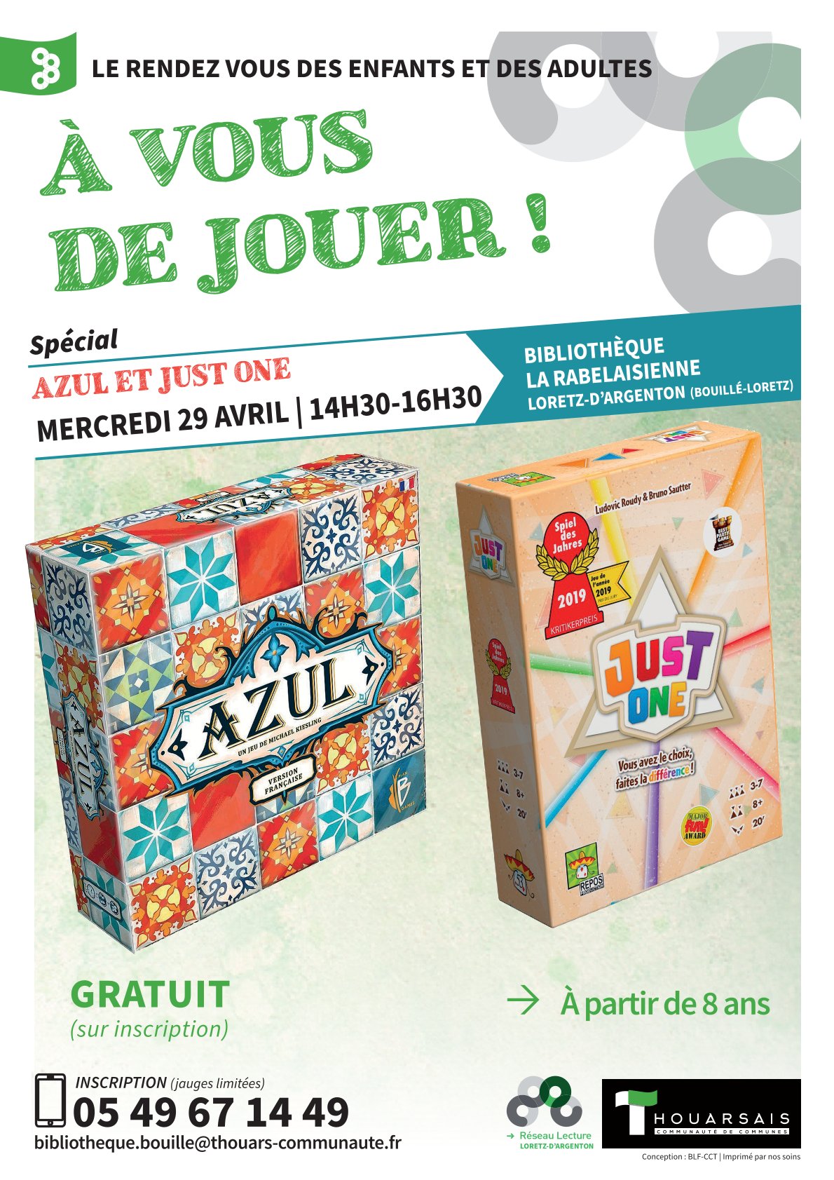 Venez tester les jeux mythiques Azul et Just One à la bibliothèque, Pour le premier l'objectif est de créer un motif en mosaïque de manière stratégique et pour l’autre, le but est de faire deviner des mots en mode coopératif très fun ! dés 8 ans - gratuit - sur inscription