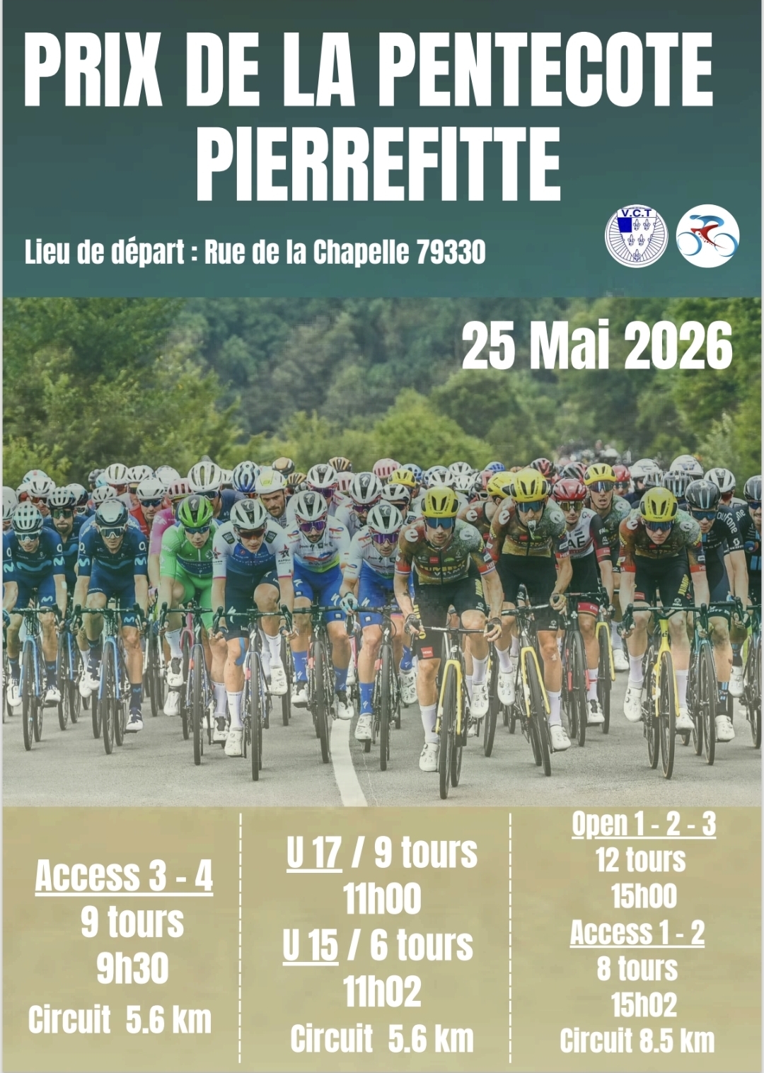 Course Cycliste à PIERREFITTE départ rue de la Chapelle 79330 Pierrefitte Access 3- 4 : départ 9H30 U17/U15 : départ 11 H00 Open 1-2-3 Access 1-2 : départ 15H00 Buvette Snack sur place Renseignements 06 99 10 93 27